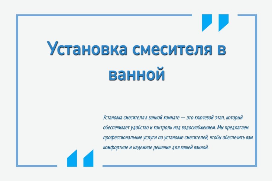 Установка смесителя — это важный элемент создания комфортной и функциональной ванной комнаты. Доверьте эту задачу профессионалам, и вы получите качественное и надежное решение для вашего дома.
